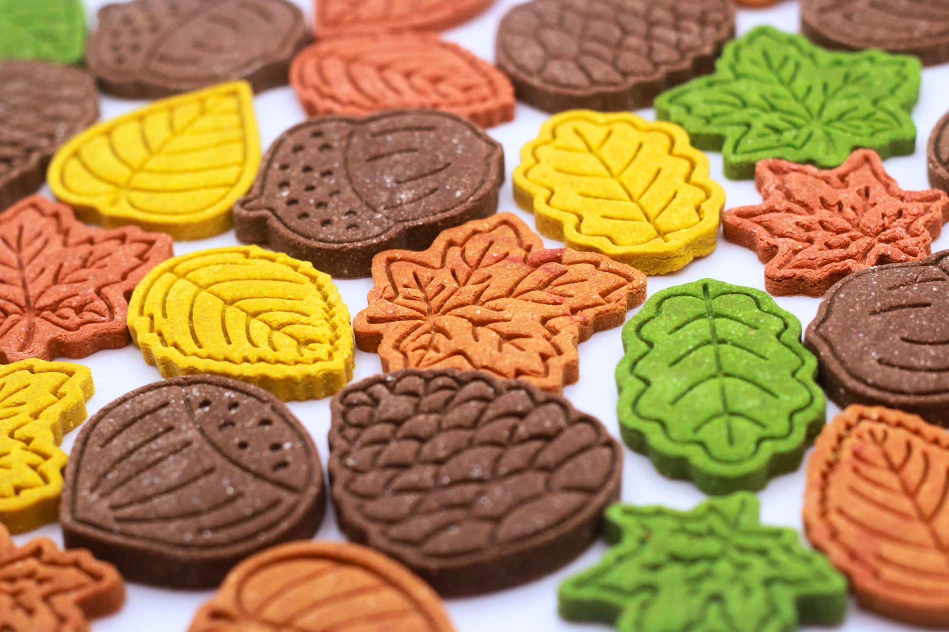 The Autumn Leaves Maxi Pack perfectly capture the feeling of Autumn in larger sized cookies! A perfect mix of colourful leaves and tasty carob extras, this pack is the perfect example of the typical Autumn tree. These cookies are great to use as a topper, training treat, or even as a tasty snack.